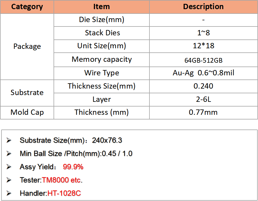 公司憑借先進設備、嚴格工藝控制和全流程服務,可為客戶提供高可靠Memory芯片封測解決方案。